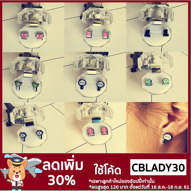 บริการจัดส่งทั่วประเทศ สั่งซื้อผ่านเน็ต รอรับ โค้ด CBLADY30 ลด 30% 1Pair Fashion Wanna One Got7 Jewelry Kpop Stud BTS Earrings Bangtan Boys ที่บ้านได้เลย