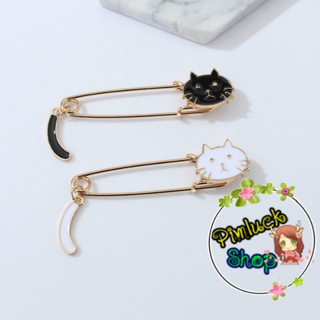 ราคาโปรโมชั่น!! พร้อมส่ง เข็มกลัดลายแมวสีขาวสีดำ คุ้มไปเลยสุดๆ