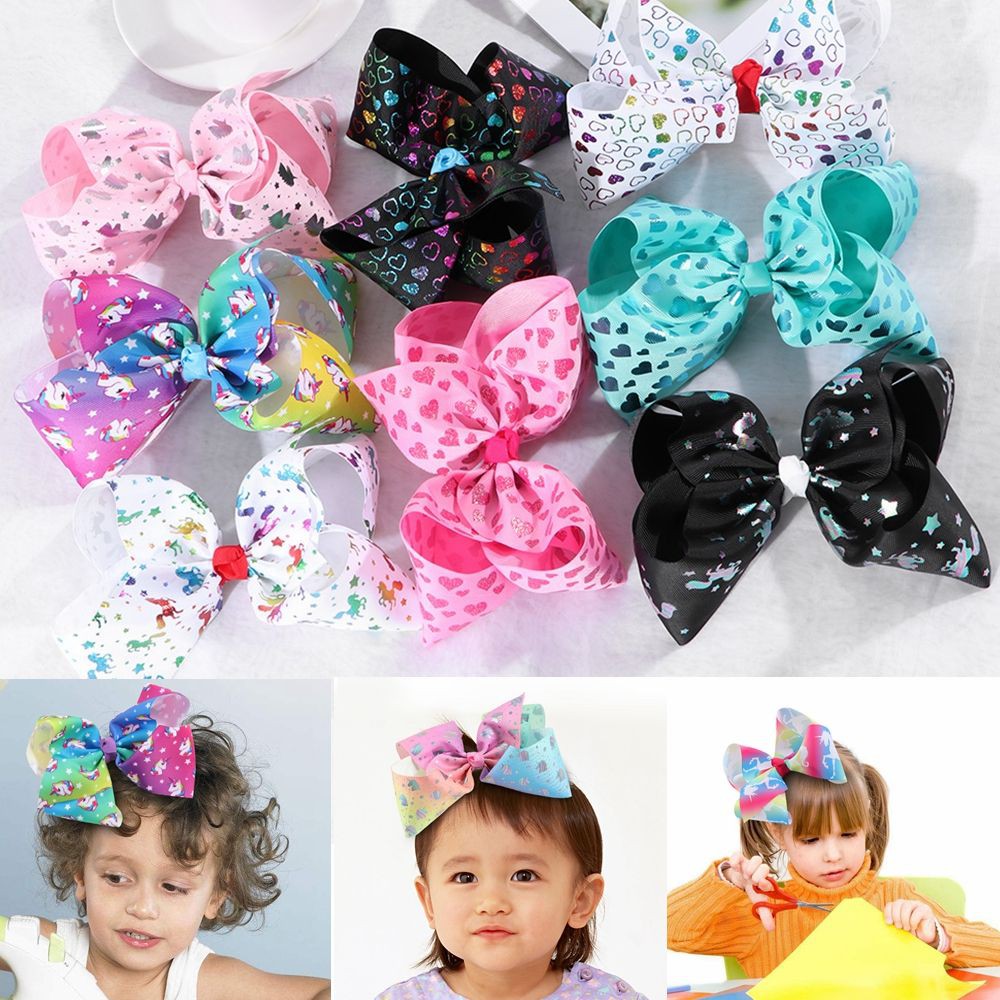 Material: Satin Ribbon + Alloy Color: 8 Colors,As pictures show. Occasion: Daily Life, Party Dress Width Of Ribbon: 3.1 Inch Size: Approx.6.7 x 5.1 Inch Season: Spring Summer Autumn Winter Type: Unicorn Butterfly Hairpins Style: Lovely Unicorn,Fashion Features: -100% Brand new and high quality. -Fashion and cute,Classical kids hair accessories. -High quality, well made princess hairpins with big bowknots. -Cartoon,Lovely,all kinds of pattern Kids Unicorn Butterfly Hair Clips. -Great Valentine's gifts for daughter,girls and baby. -All ribbon ends are heat sealed to prevent from fraying. No loose fabric strings. Package Included: 1 x Unicorn Bowknot Hair Clips Note: 1.Please allow 1-3 cm error due to manual measurement. 2.Due to the difference between different monitors, the picture may not reflect the actual color of the item. Thank you!