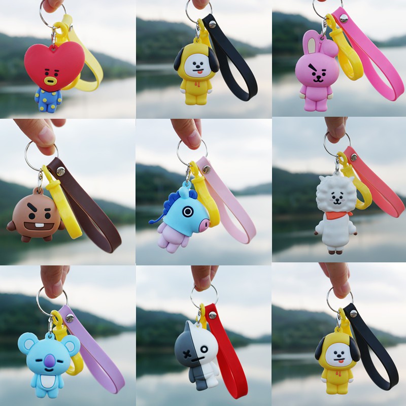 New BT21 PVC Doll Pendant Keychain Lanyard Doll Pendant Material: PVC Doll Pendant Height: about 5-7cm , width: about 3.5-4.5cm ( different style has different size) Strap Material: Leather ( another 2 small key ring: plastic, metal ) About strap color: matched with doll pendant, as see on picture. Feature: pvc pendant(solid, not hollow), not very hard, but a little soft, cute to hold on hand or hang on bags, etc. What's in Package: 1 set = 1doll pendant + 1leather strap + 1small plastic key ring + 1small metal key ring bts bt21 tata v cooky chimmy bangtanboys dolls 3d keychain lanyard plastic accessories ornament phonestrap keyring