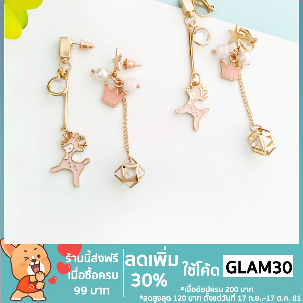 - ชื่อสินค้า โค้ด GLAM30 ลด 30% Lucky สัตว์น่ารักๆแบบหูคลิปการ์ตูนนักศึกษาต่างหูกวาง