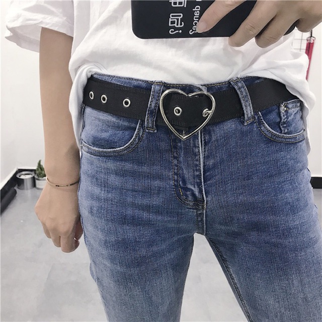 ทางร้านมีเข็มขัดสไตล์ออลจังให้เลือกถึง 4 แบบ และแบบนี้เป็นแบบที่ฮิตมากๆอีกแบบหนึ่ง ความเก๋ของนางอยู่ที่หัวและสวย สายผ้า ทนทาน บวกกับหัวเข็มขัดหัวใจสีเงินดำ ทำให้ใส่กับกางเกงตัวไหนๆก็ดูโคเรียเกิล สาวเกาหลี สวยใสจริงๆค่ะ โดยเฉพาะยีนส์ สวยเกร๋แบบในรูปเลยค้ะ แบบนี้ต้องมีไว้สักเส้นแล้วน๊า Long 105cm wide 3cm __________ It is cloth material & measures at 40! Modeled on a 25 waist! Has mutiple grommets to fit tightly on a 27-33 waist! Pair with anything in your closet to lighten up your outfit a bit!