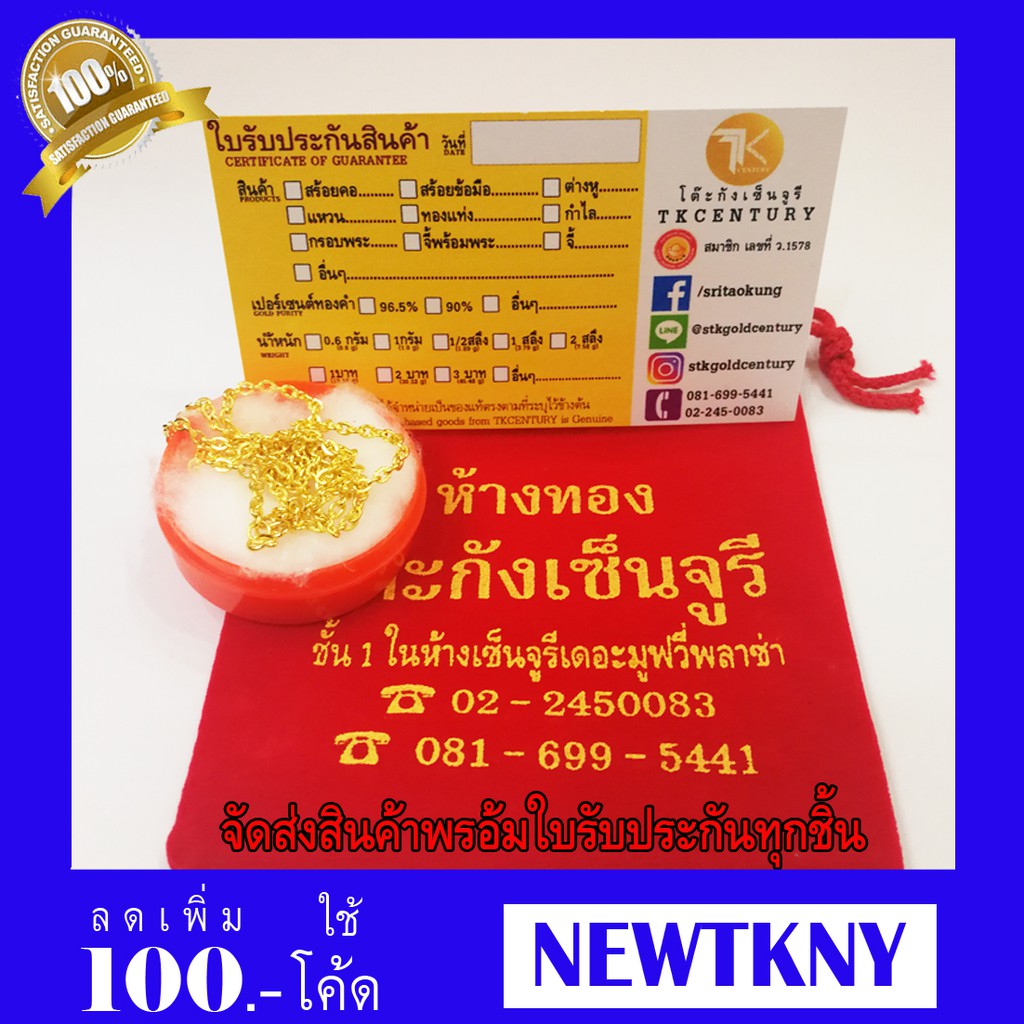 คุณสามารถที่จะตรวจสอบคุณสมบัติ ตามคำอธิบาย และสามารถตรวจสอบสถานะของสินค้าว่ายังมีสินค้า หรือ สินค้าหมด จากทางเราได้แบบ Real Time ได้เลยในขณะนี้ ก่อนทำการสั่งซื้อ มีใบรับประกันทุกชิ้น สร้อยคอครึ่ง ทองคำแท้96.5% ท่านควรตรวจสอบระยะเวลาในการจัดส่งสินค้าก่อน เพื่อจะได้คำนวนวันเวลาและกำหนดสถานที่จัดส่งได้แน่นอน