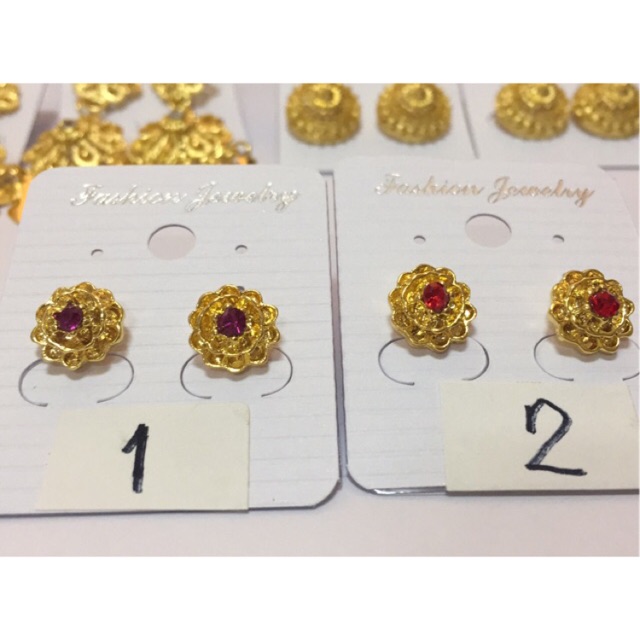 ต่างหูทอง (ไม่มช่แบบหนีบนะคะ) ลายกุหลาบพลอยแดง พลอยม่วง ลายดอกพิกุล ขนาด 1.5 ซม. ดอกไม้ห้อยตุ้งติ้ง ต่างหูทอง ต่างหูชุดไทย