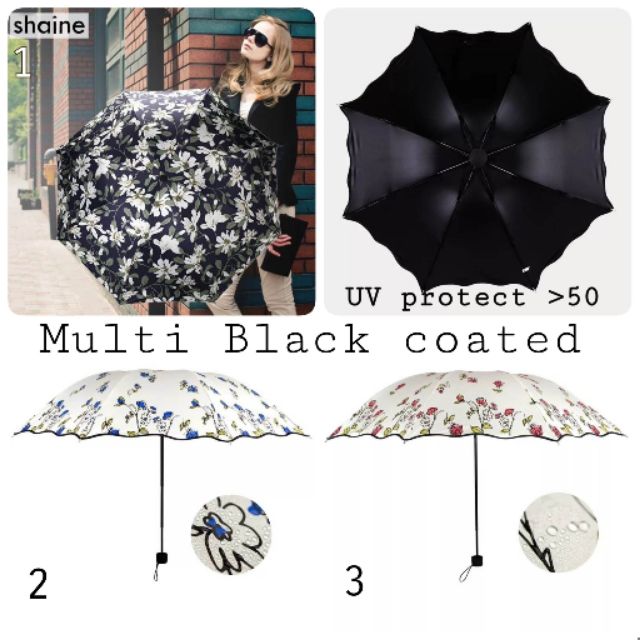 (ร่ม)(ฝน)ร่มกันแดดญี่ปุ่น รุ่นเคลือบ Multi Black Coated กันUV ได้มากกว่า 50% ออกแบบปลายร่มเป็นแฉกดอกไม้ สุดโมเดิ้นท์ ลายดอกเดซี่พื้นสีกรมท่า ลายดอกฟ้า พื้นขาวออฟไวท์ ลายดอกชมพู พื้นขาวออฟไวท์ ขนาด: เมื่อกาง 100ซม เมื่อพับ 24ซม น้ำหนัก เบา เพียง 330กรัม UPF> 50 กันรังสีจากแสงแดด UV รังสี UVA จริง UVB, UVC รังอัลตราไวโอเลตที่ส่งผลกระตุ้นคอลลาเจนผิวชั้นหนังแท้แตกหักของเมลานินที่ผิวหนัง ก่อให้เกิดริ้วรอย ร่มรุ่นนี้ออกแบบมาให้ สามารถป้องกันได้อย่างมีประสิทธิภาพ! ตัวโครงแข็งแรงทนทาน ต้านลมต้านฝนไม่พับงอ ก้านผลิตจาก ABS ทนทานและน้ำหนักเบา เป็นรุ่นที่สาวญี่ปุ่น นิยมใช้ที่สุดในขณะนี้ บ้านเราไม่ค่อยเจอร่มสวยๆ และทนทาน นำมาจำหน่าย ทางเราขอตอบโจทย์สาวที่อยากเกร๋ ด้วยร่มเหมือนสาวญี่ปุ่น ในราคาแสนเบา (ร่ม) ร่มญี่ปุ่นร่มกันแดดร่มพับร่มกันฝนร่มกันuvร่มแฟชั่นร่มพกพา