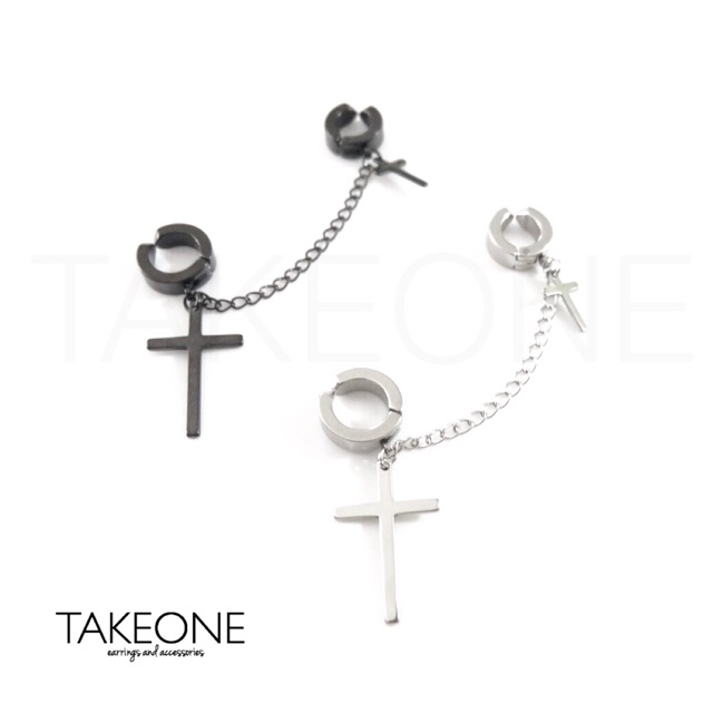 - ชื่อสินค้า ต่างหูหนีบ | โซ่สแตนเลสลายกางเขน